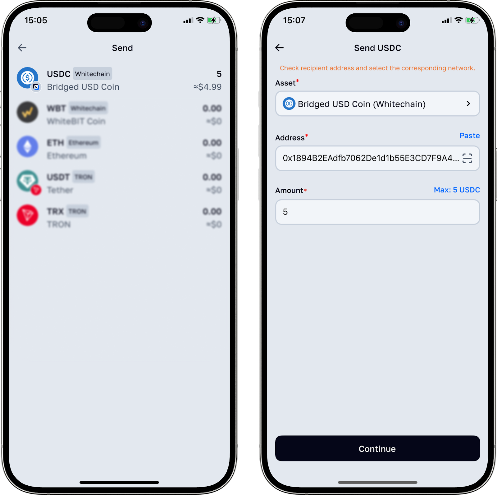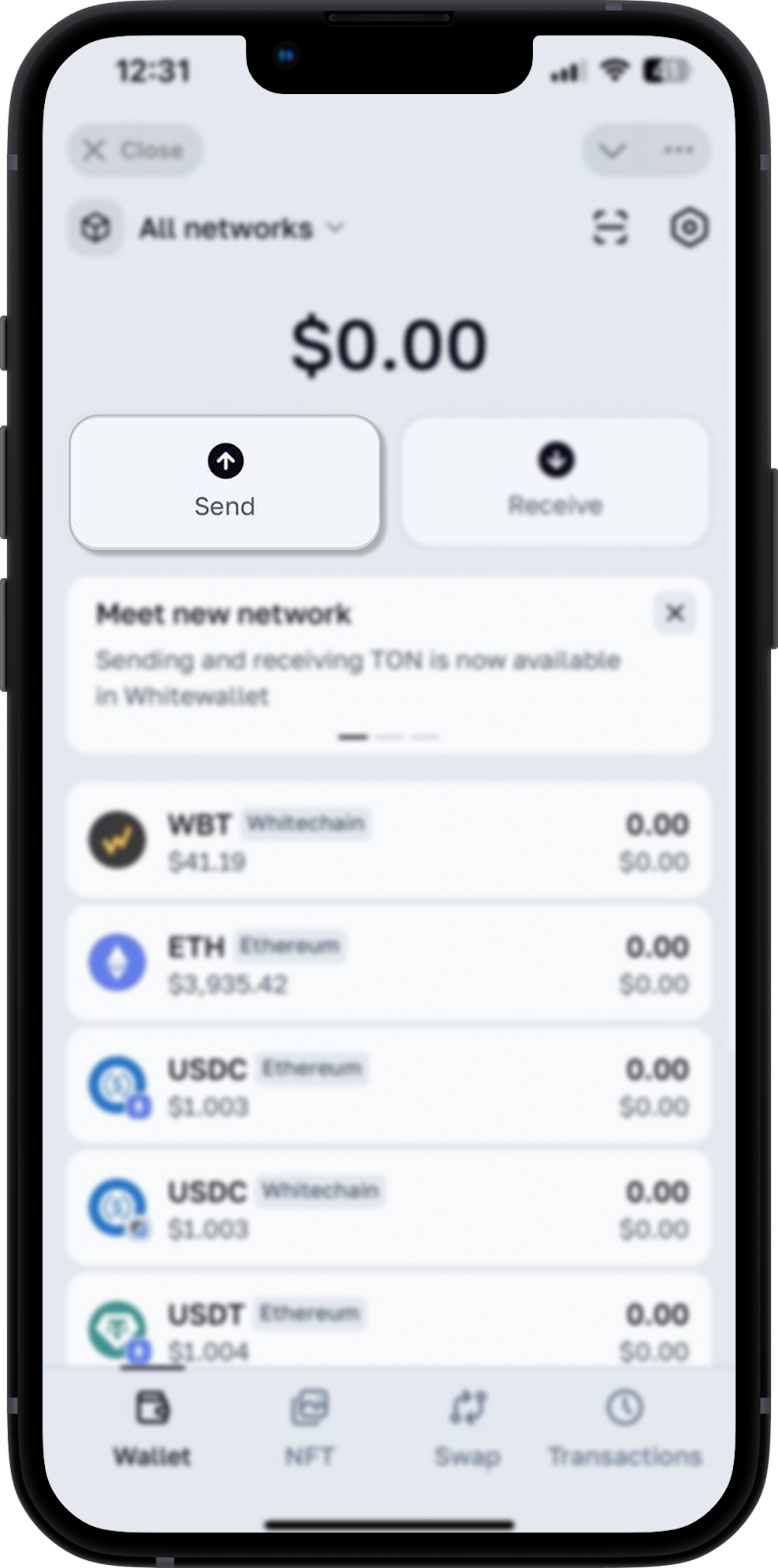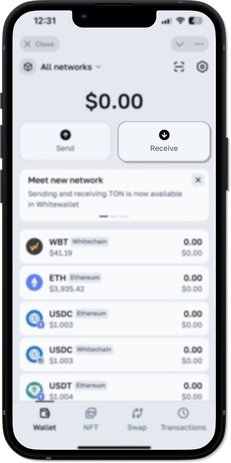 Please note: Whitewallet currently supports the Whitechain, Ethereum, Base, Arbitrum, Optimism, Linea, Solana, Tron, TON and BSC networks.