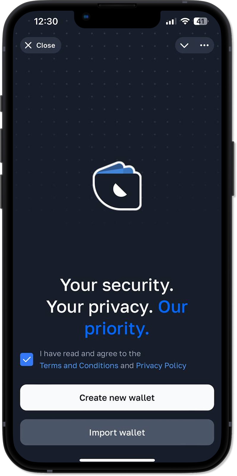 Please note: if you have previously created an account in an older version of the wallet (Whitewallet), you can import your data by clicking on “Import wallet”.