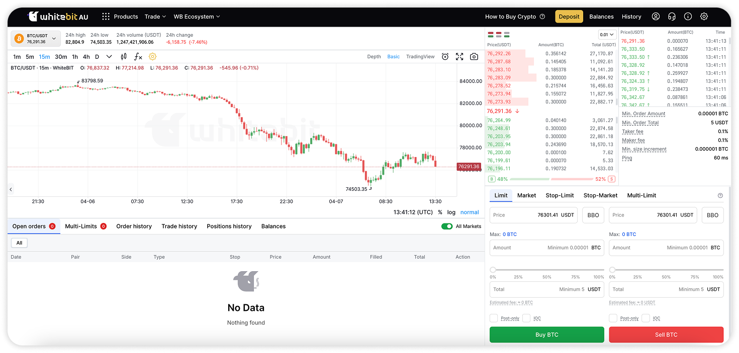 WhiteBIT Australia trading terminal overview