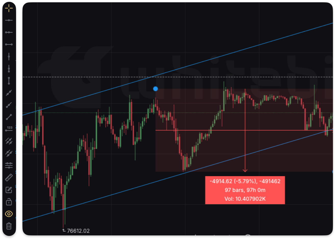 Drawing tools are available on the chart. These are essential for a detailed analysis of the market and for adapting your decisions to your trading strategy. You can use them to mark support and resistance levels, draw trend lines, apply technical analysis indicators, and make notes directly on the chart.