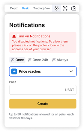 In addition, you can expand the chart to full screen for easier analysis, take screenshots by clicking the camera icon, and set up notifications for a specific price or percentage change in an asset by selecting the alarm icon.