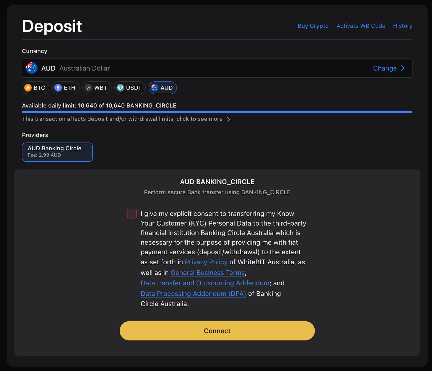 Depositing with AUD on WhiteBIT Australia is one of the ways to fund your account and start trading on our exchange.