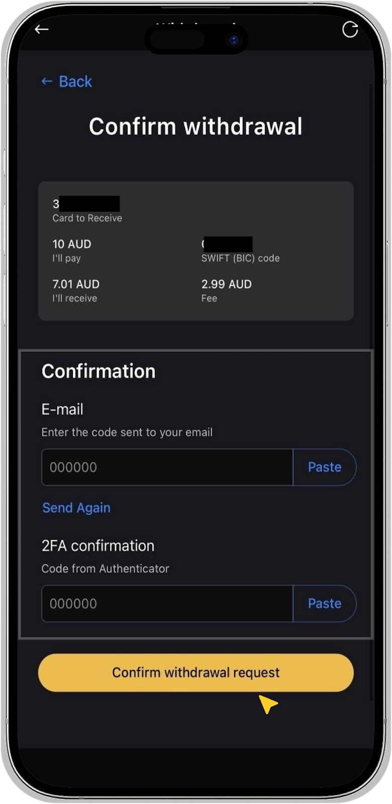 How to make a withdrawal of AUD using an app?